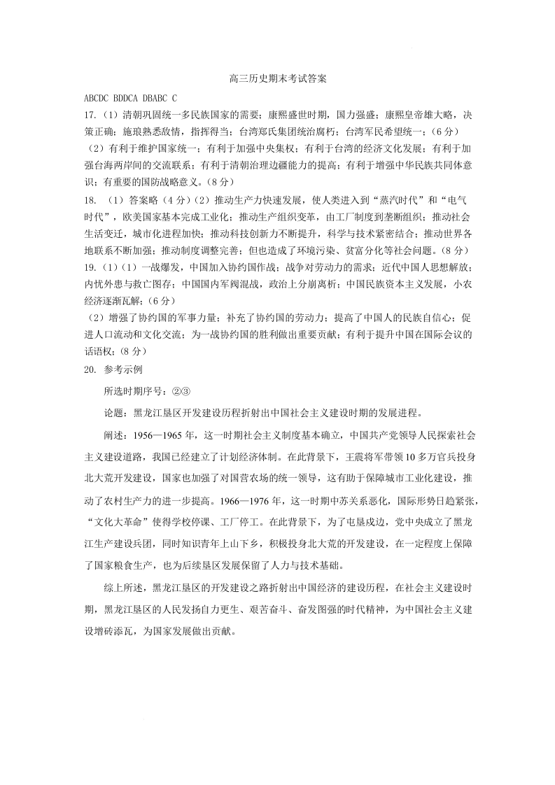 哈尔滨市第六中学2026届高三上学期期末测试 历史答案.docx