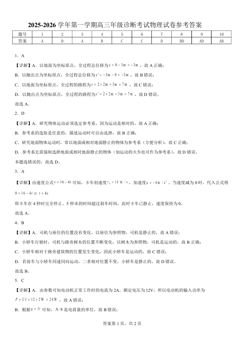内蒙古鄂尔多斯市第一中学2026届高三上学期1月月考 物理答案.docx
