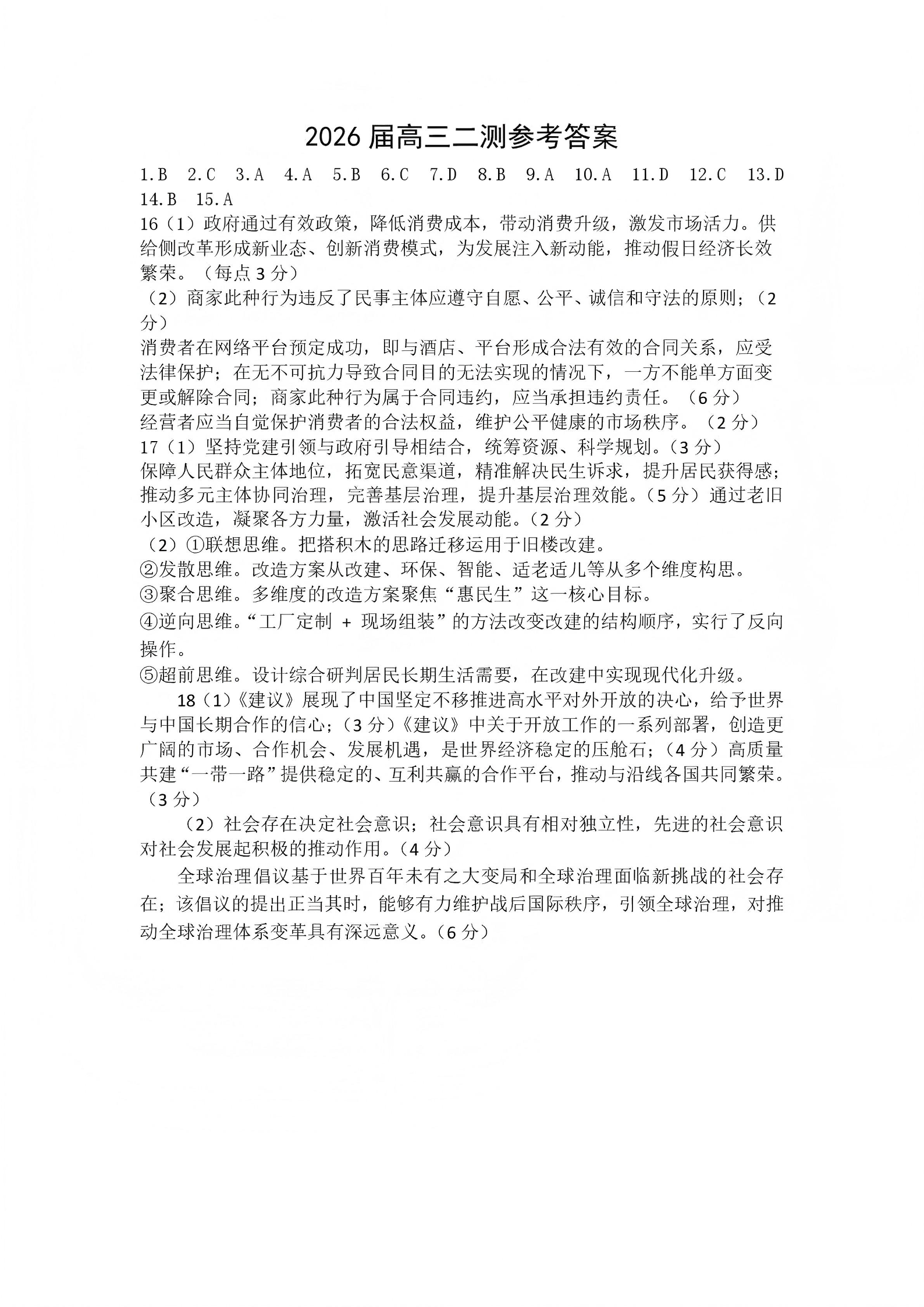 河南省豫西北教研联盟2025-2026学年高三第二次质量检测 政治答案.pdf