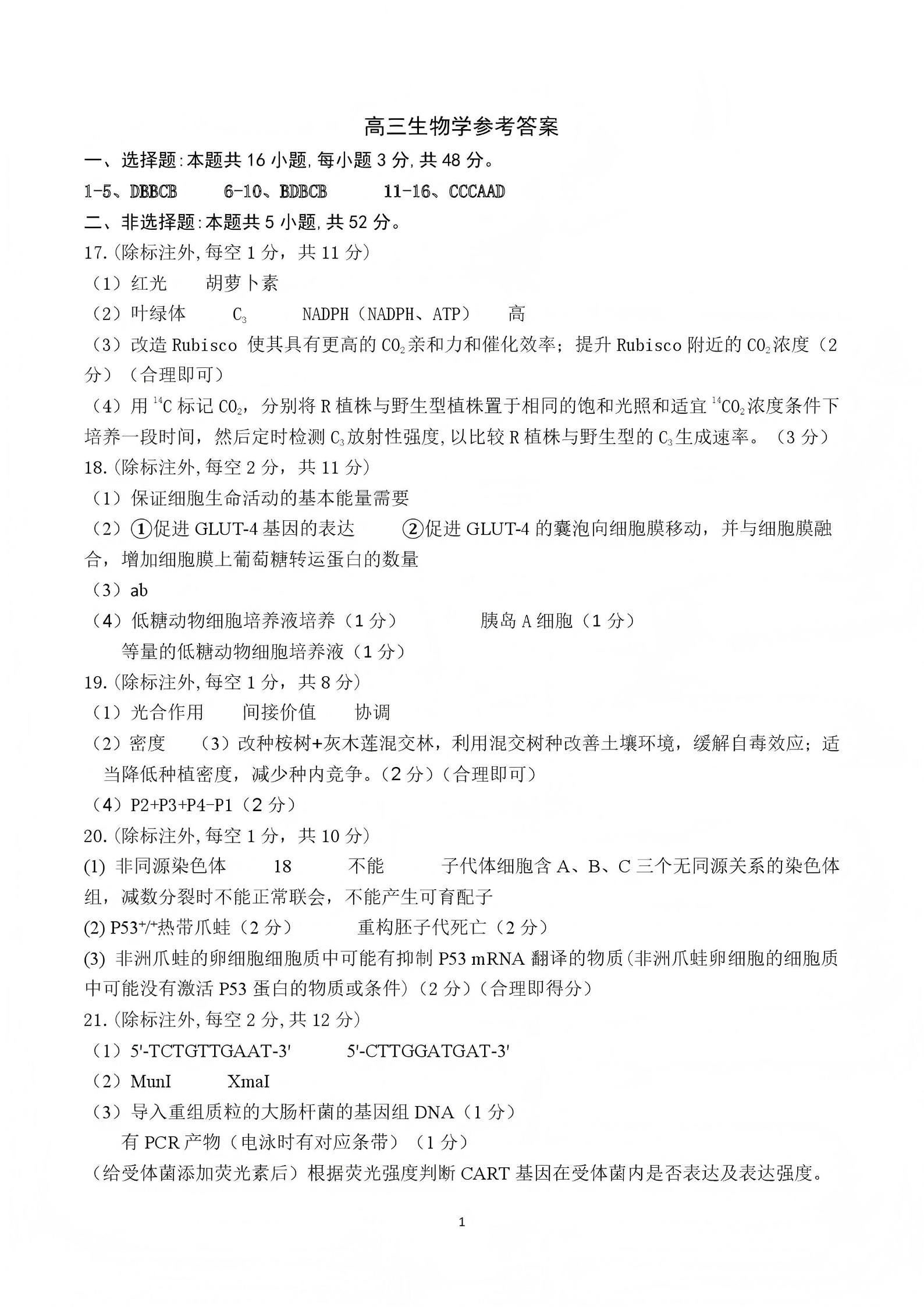 河南省豫西北教研联盟2025-2026学年高三第二次质量检测 生物答案.pdf