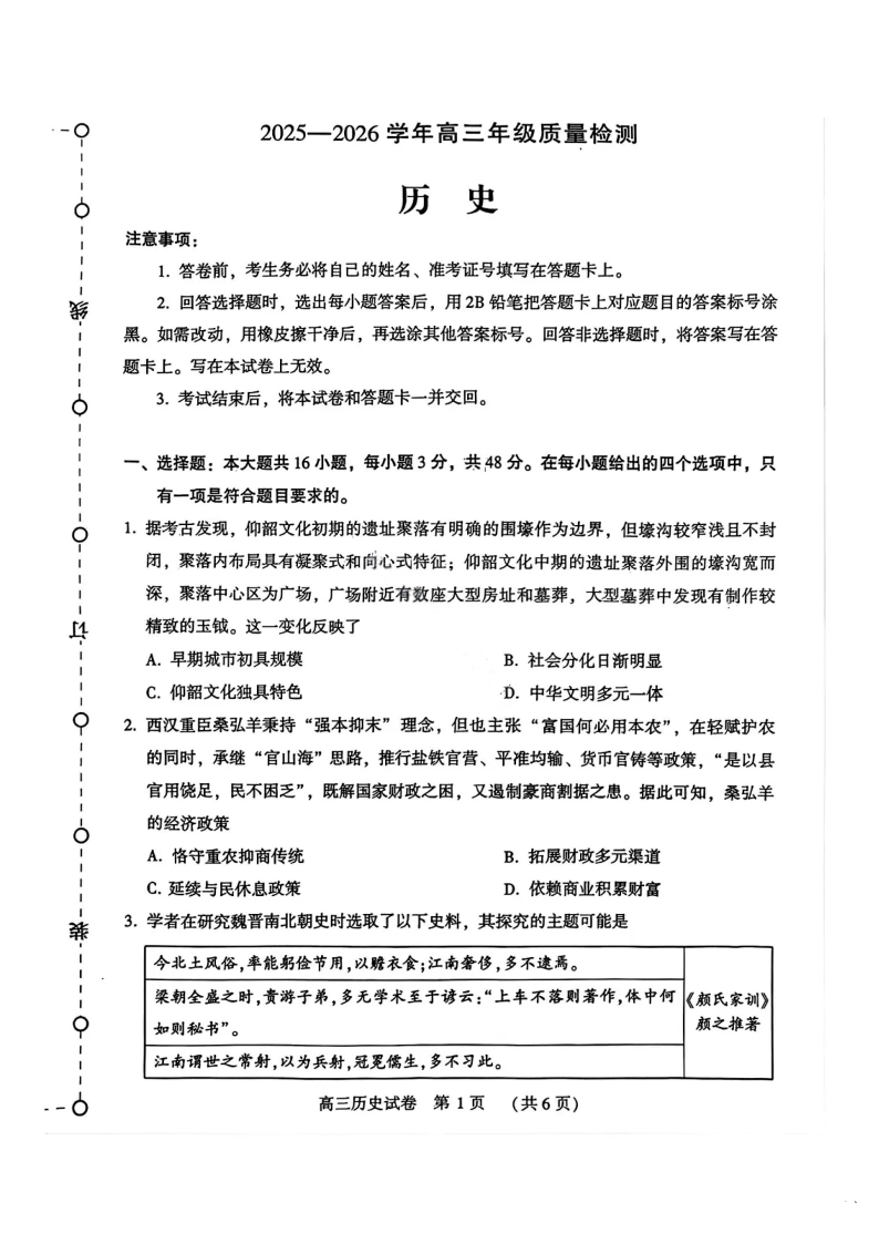 河南省豫西北教研联盟2025-2026学年高三第二次质量检测 历史.pdf