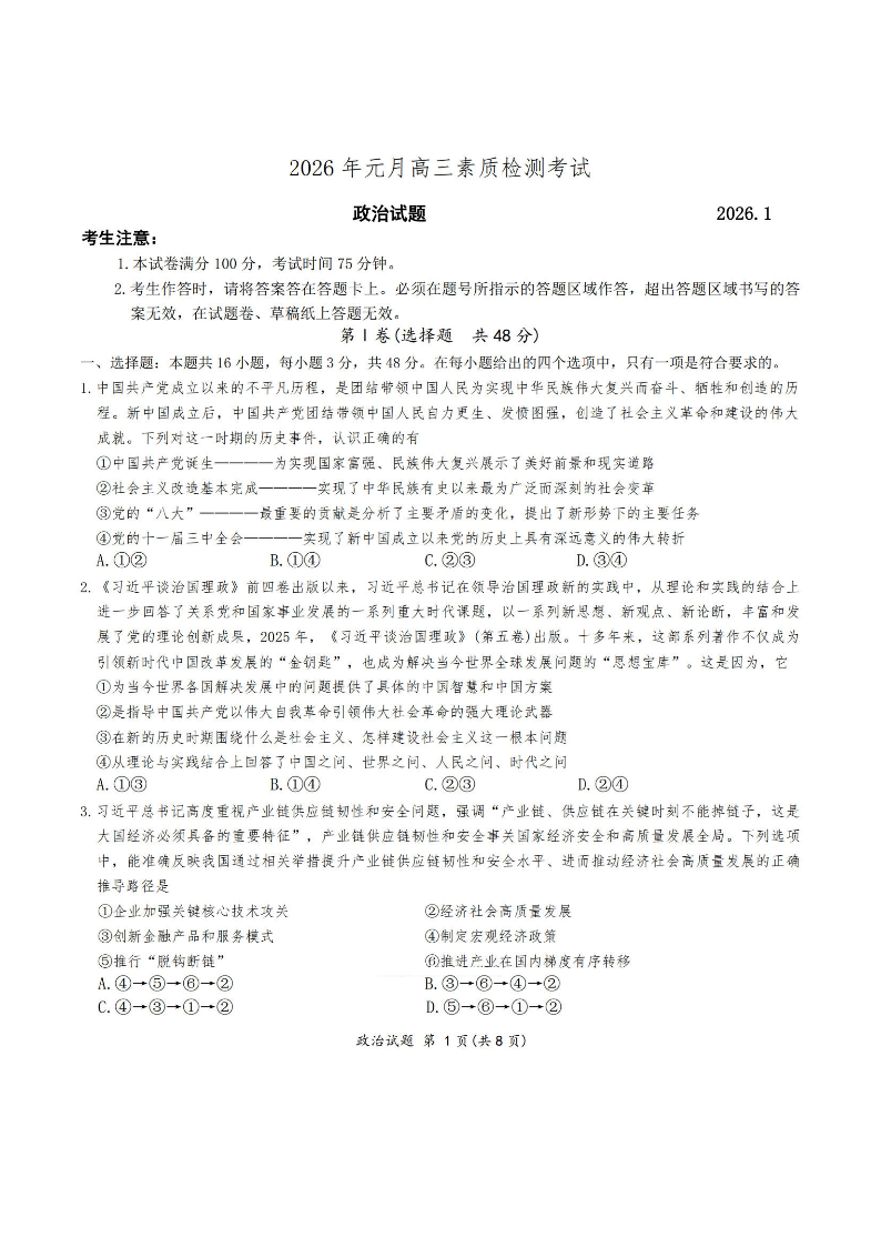 安徽省六校2026年元月高三素质检测考试 政治.pdf