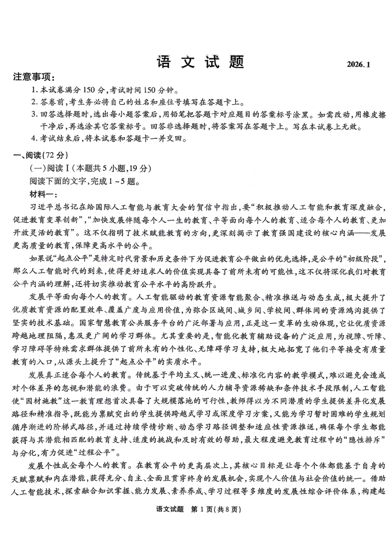 安徽省六校2026年元月高三素质检测考试 语文.pdf