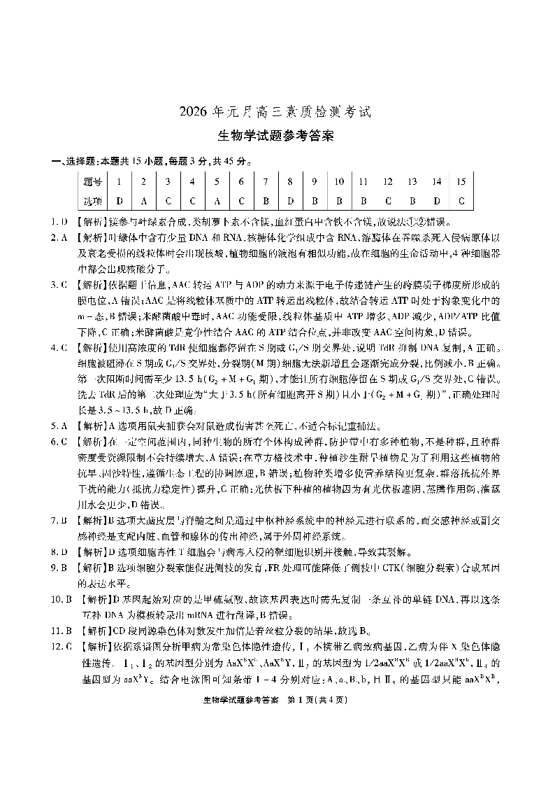 安徽省六校2026年元月高三素质检测考试 生物答案.pdf