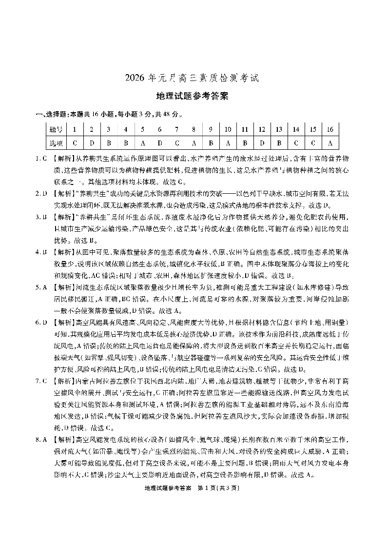 安徽省六校2026年元月高三素质检测考试 地理答案.pdf