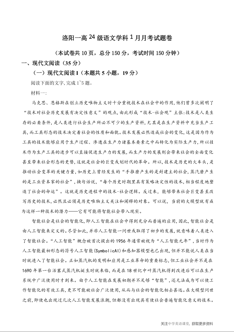 河南省洛阳市第一高级中学2025-2026学年高二上学期1月月考 语文试卷(含答案).docx
