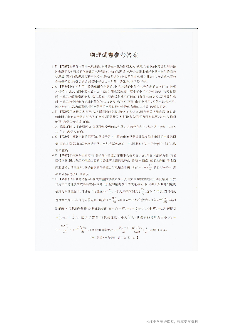 辽宁省抚顺市六校协作体2025-2026学年度高二上学期期末联考 物理答案.docx