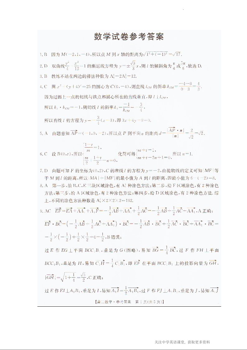 辽宁省抚顺市六校协作体2025-2026学年度高二上学期期末联考 数学答案.docx