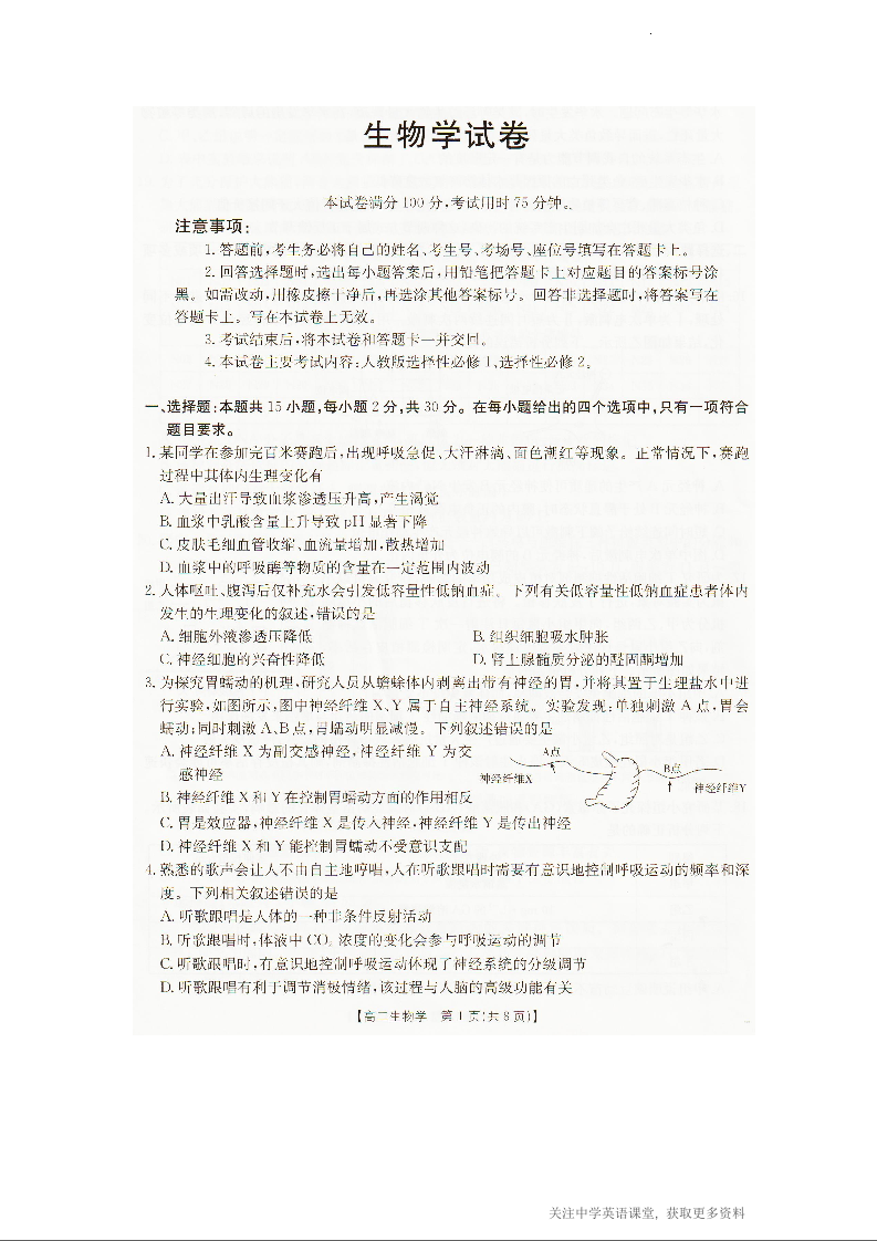 辽宁省抚顺市六校协作体2025-2026学年度高二上学期期末联考 生物.docx