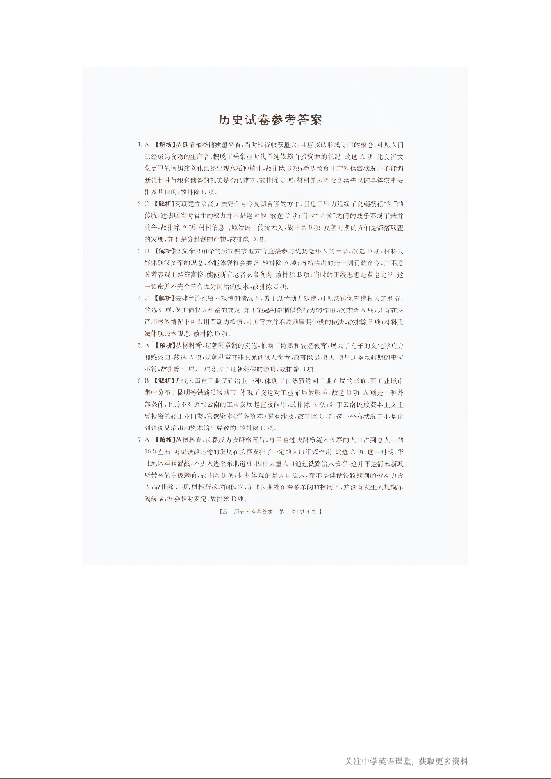 辽宁省抚顺市六校协作体2025-2026学年度高二上学期期末联考 历史答案.docx