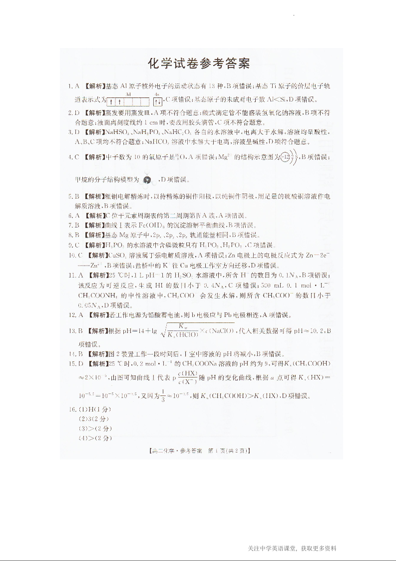 辽宁省抚顺市六校协作体2025-2026学年度高二上学期期末联考 化学答案.docx