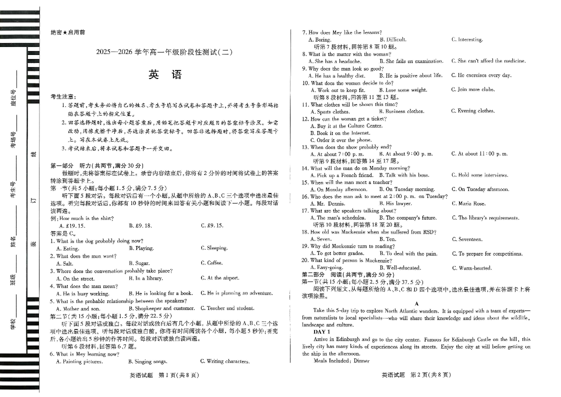 河南省豫北名校2025-2026学年高一年级1月阶段性测试(二)英语试题(含答案).pdf