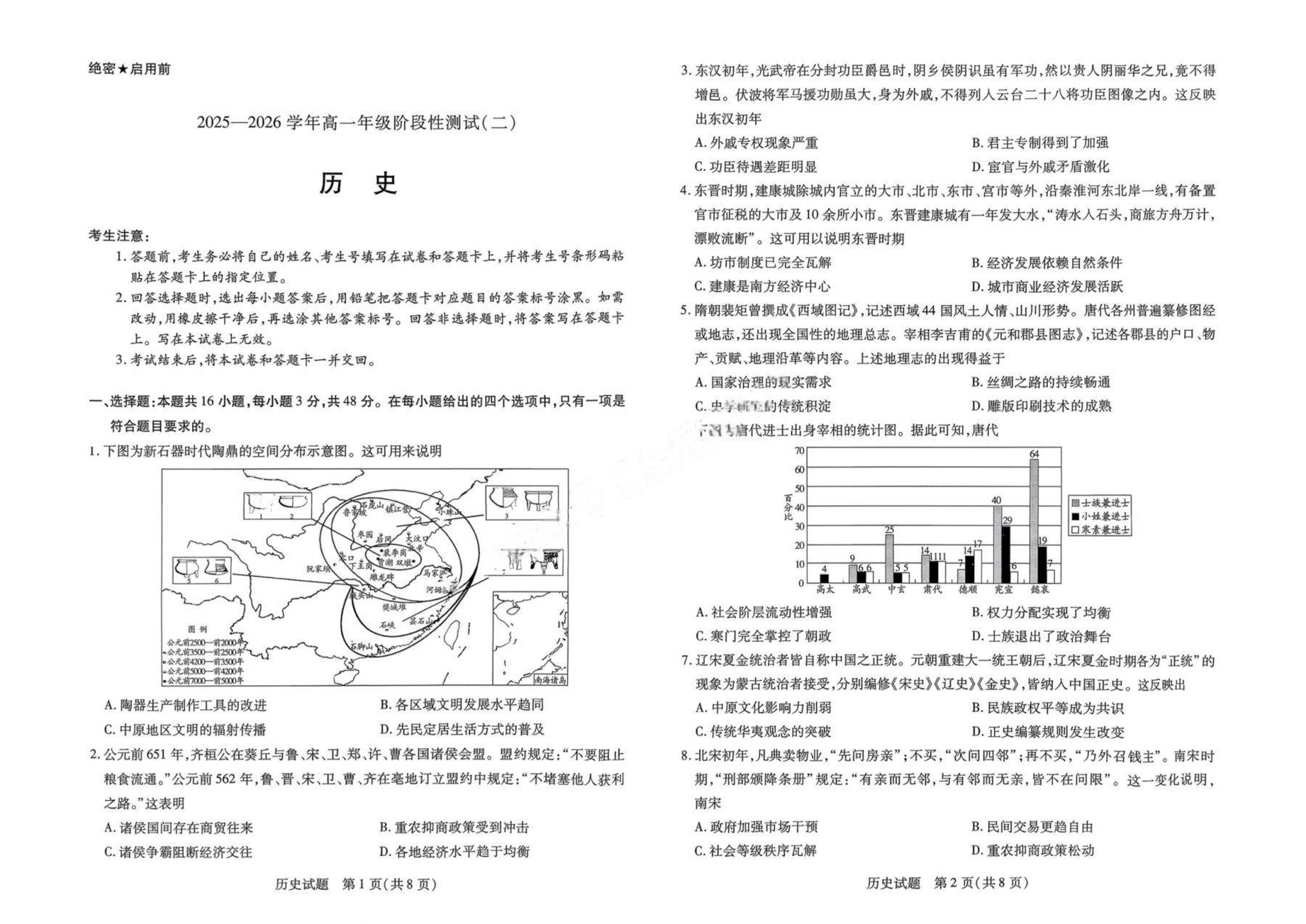 河南省豫北名校2025-2026学年高一年级1月阶段性测试(二)历史试题(含答案).pdf
