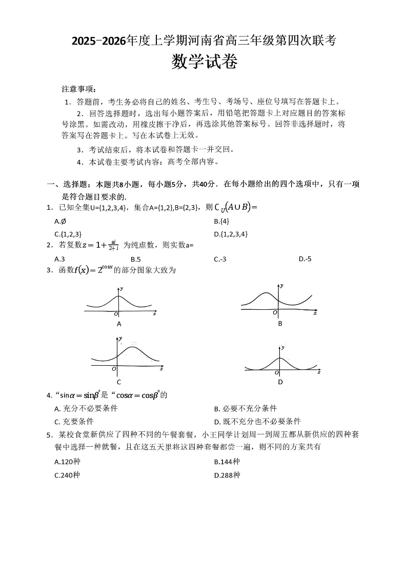 河南省2025—2026年度上学期高三年级第四次联考 数学.pdf
