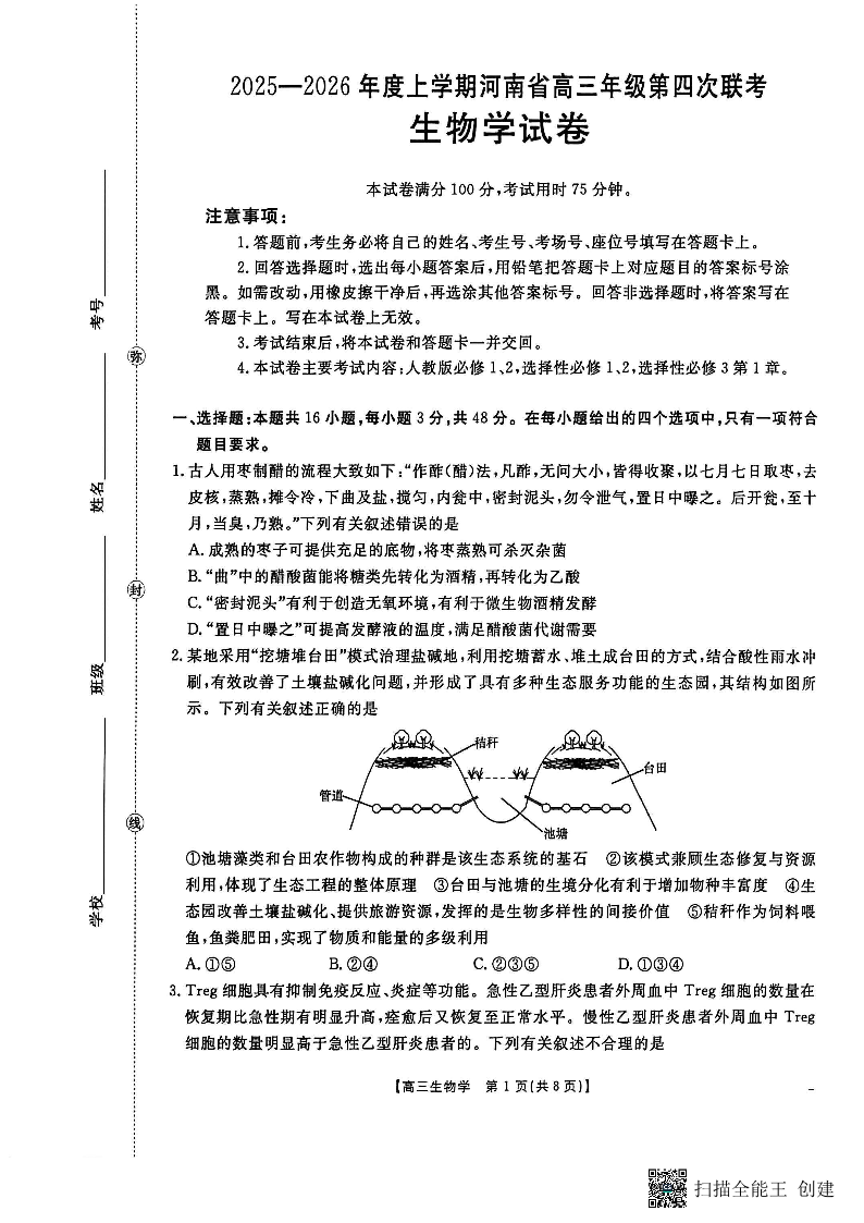河南省2025—2026年度上学期高三年级第四次联考 生物.pdf