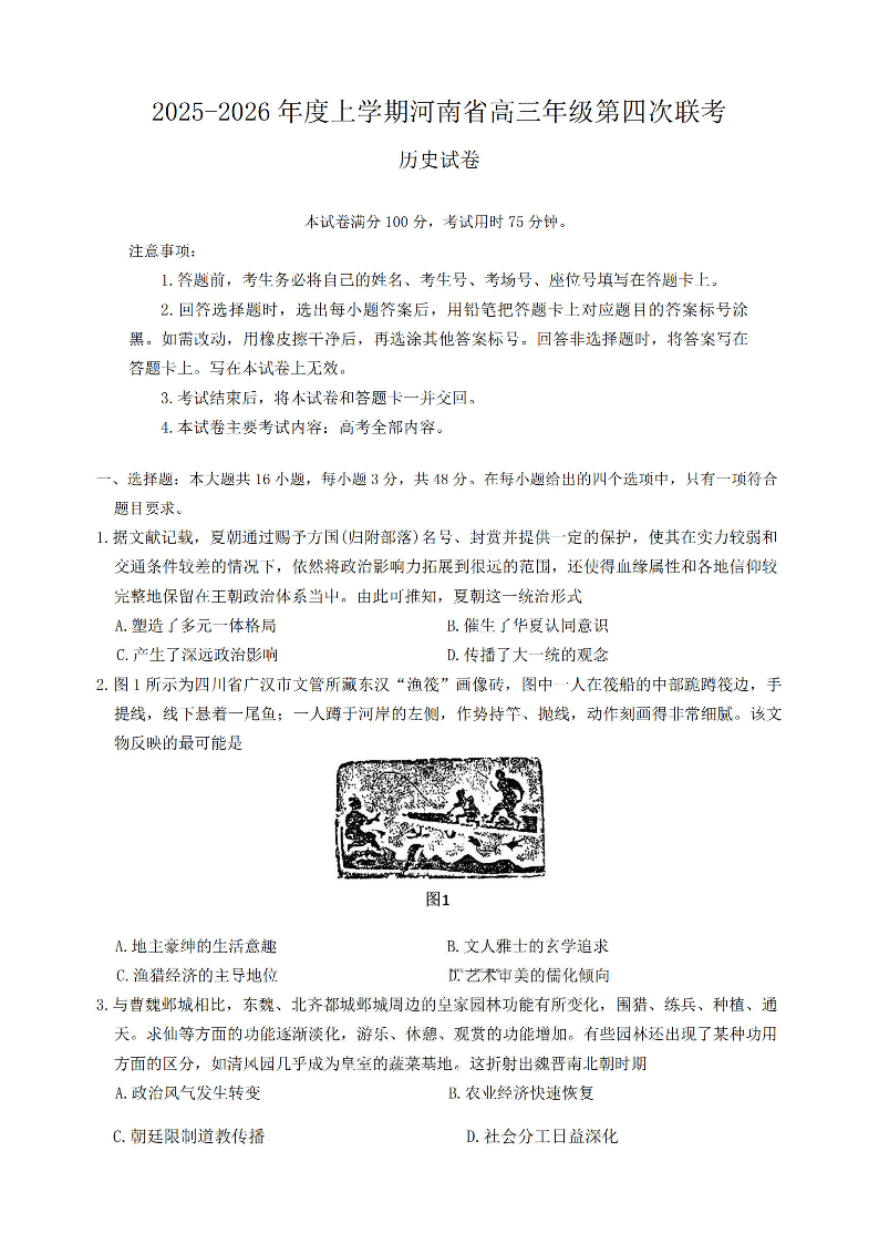 河南省2025—2026年度上学期高三年级第四次联考 历史.pdf