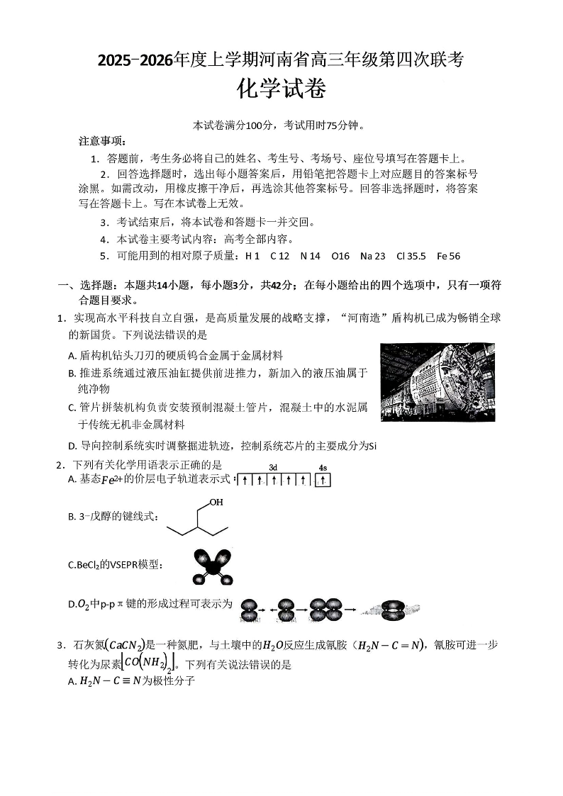 河南省2025—2026年度上学期高三年级第四次联考 化学.pdf