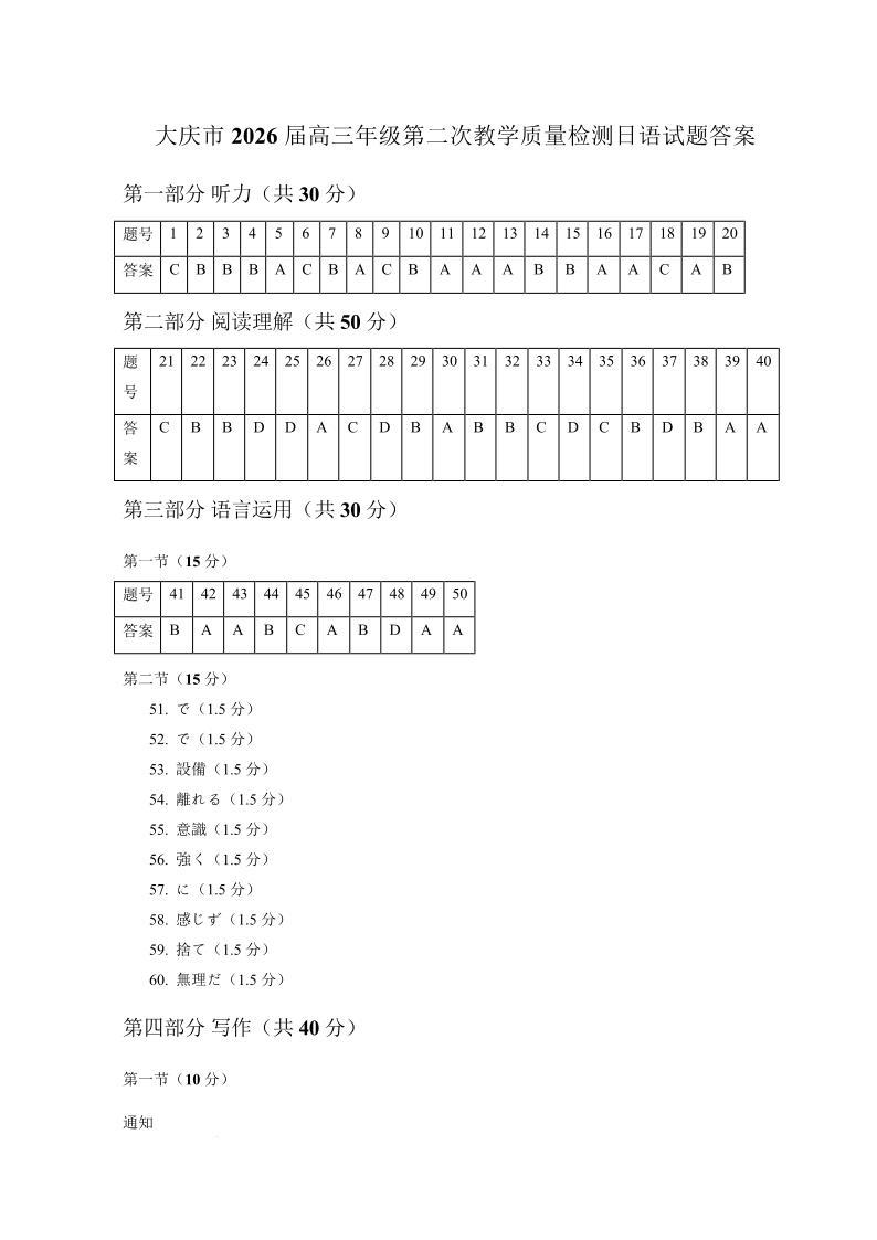 大庆市2026届高三年级第二次教学质量检测 日语答案.pdf