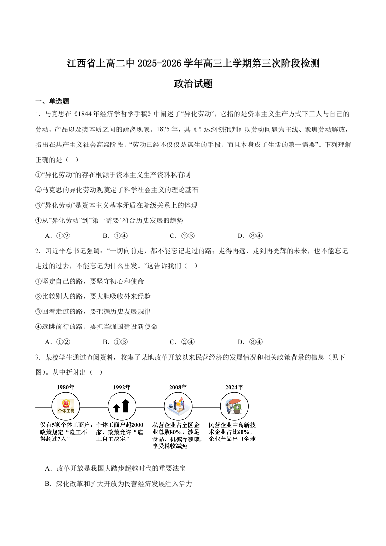 江西省上高二中2026届高三上学期第三次阶段检测 政治.docx