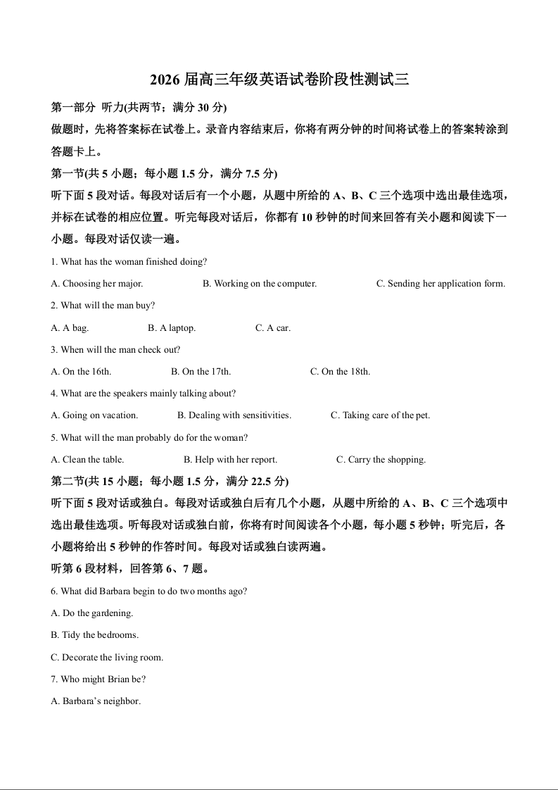 江西省上高二中2026届高三上学期第三次阶段检测 英语.docx