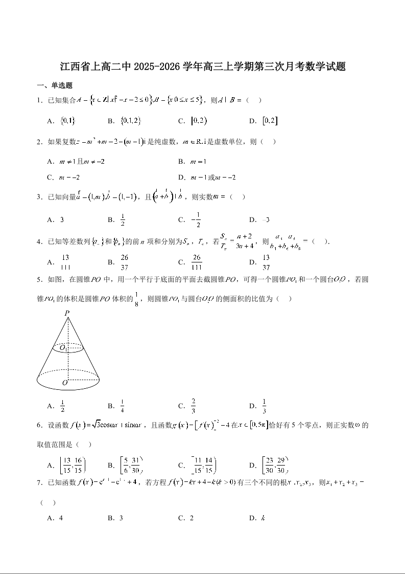 江西省上高二中2026届高三上学期第三次阶段检测 数学.docx