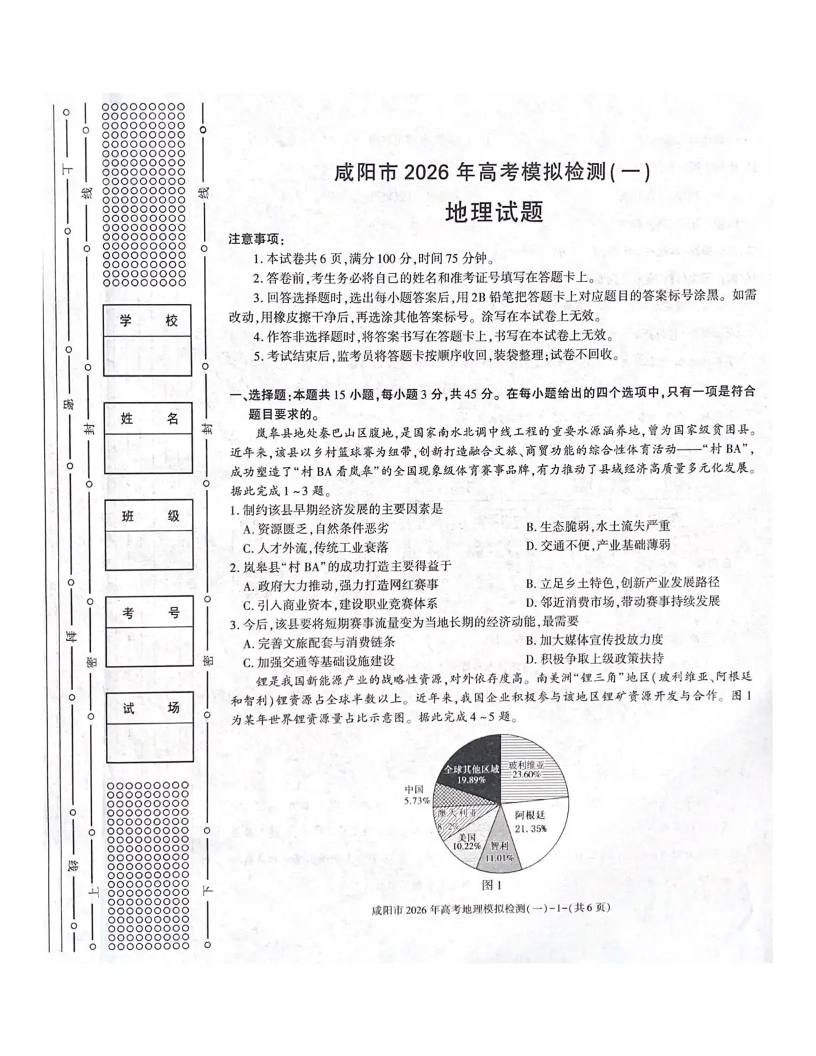 咸阳市2026年高考模拟检测(一)地理.pdf
