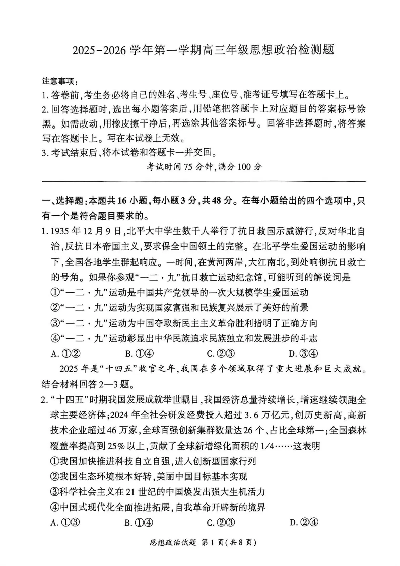 NT名校联合体2025-2026学年高三上学期1月月考 政治.pdf