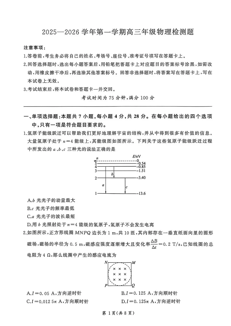 NT名校联合体2025-2026学年高三上学期1月月考 物理.pdf