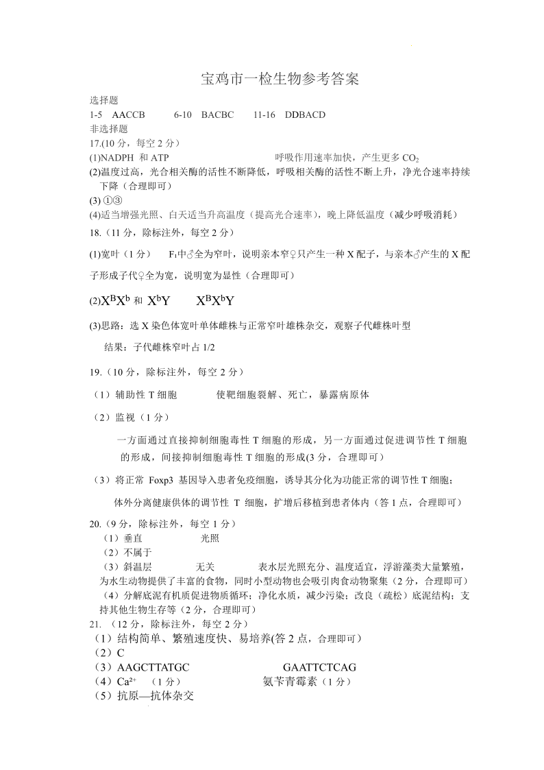 2026年宝鸡市高考模拟检测试题(一)生物答案.pdf
