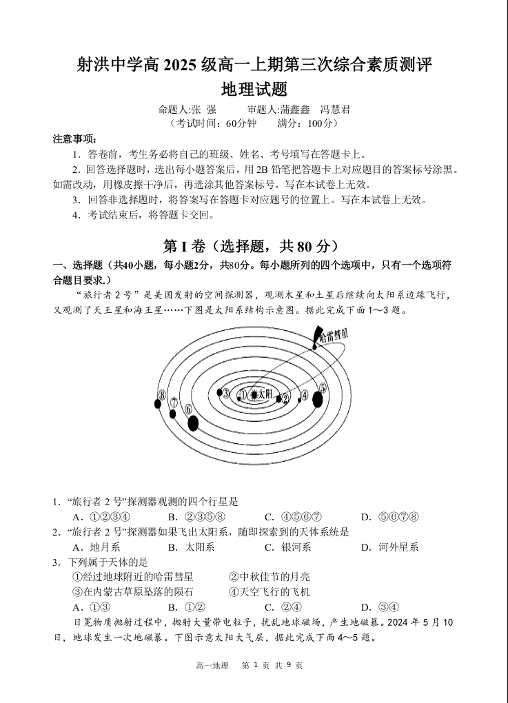 四川省遂宁市射洪中学2025-2026学年高一上学期1月月考 地理.docx