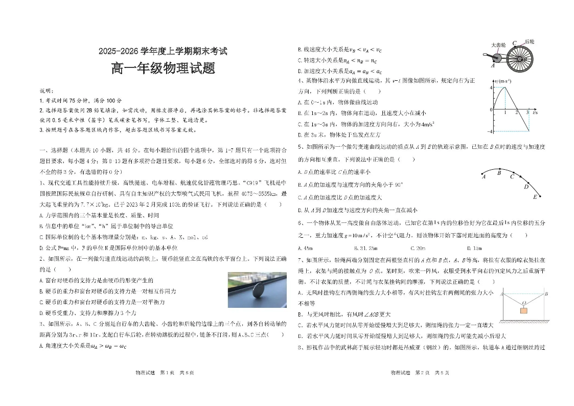 黑龙江省大庆市大庆中学2025-2026学年高一上学期1月期末考试 物理.pdf