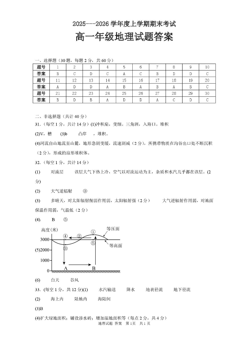 黑龙江省大庆市大庆中学2025-2026学年高一上学期1月期末考试 地理答案.pdf