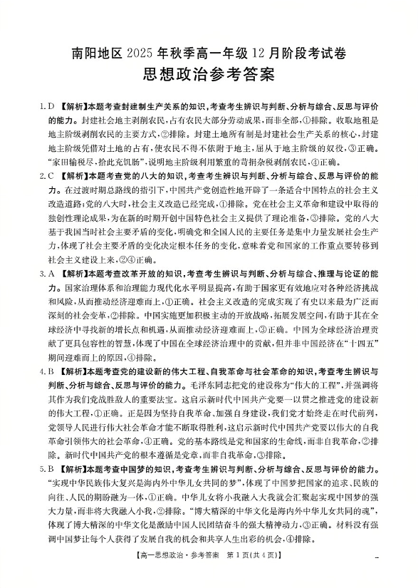 河南省南阳地区2025-2026学年高一上学期12月阶段考试卷 政治答案.pdf