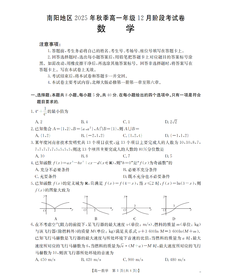 河南省南阳地区2025-2026学年高一上学期12月阶段考试卷 数学.pdf