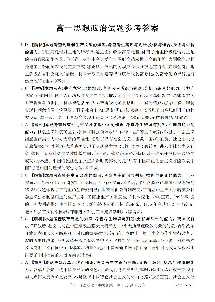 安徽省皖西南联盟2025-2026学年高一上学期12月联考 政治答案.pdf