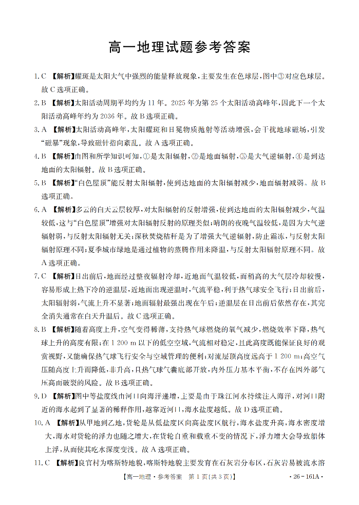 安徽省皖西南联盟2025-2026学年高一上学期12月联考 地理答案.pdf