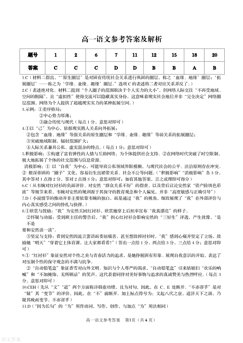 安徽省皖江名校联盟2025-2026学年高一上学期12月联考 语文答案.pdf