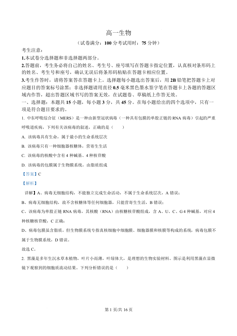 安徽省皖江名校联盟2025-2026学年高一上学期12月联考 生物答案.docx