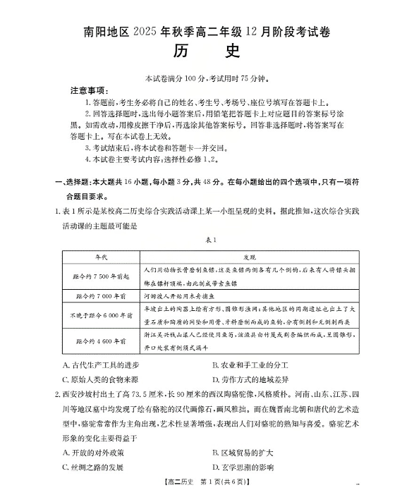 河南省南阳地区2025-2026学年高二上学期12月阶段考试卷 历史.pdf
