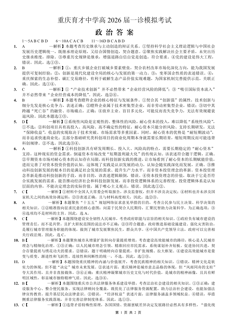 育才中学校高2026届一诊模拟考试 政治答案.pdf