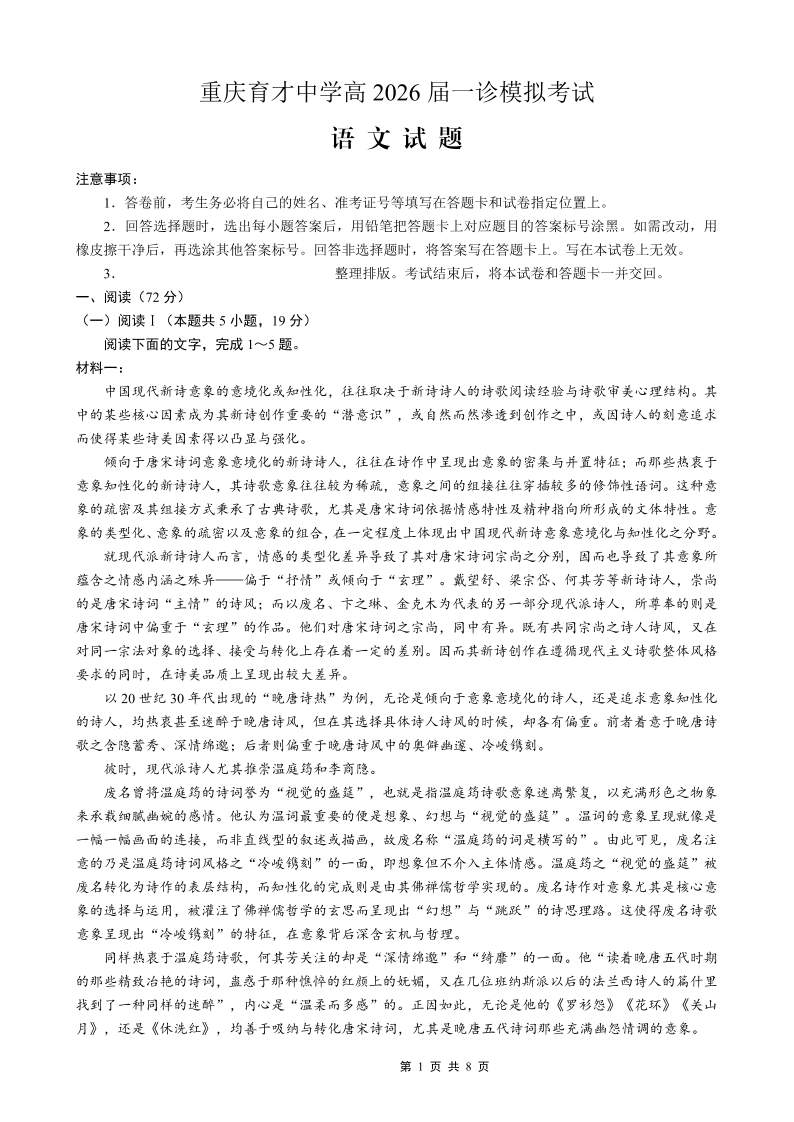 育才中学校高2026届一诊模拟考试 语文.pdf