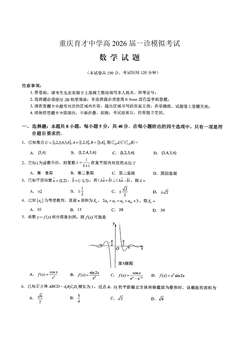 育才中学校高2026届一诊模拟考试 数学.pdf