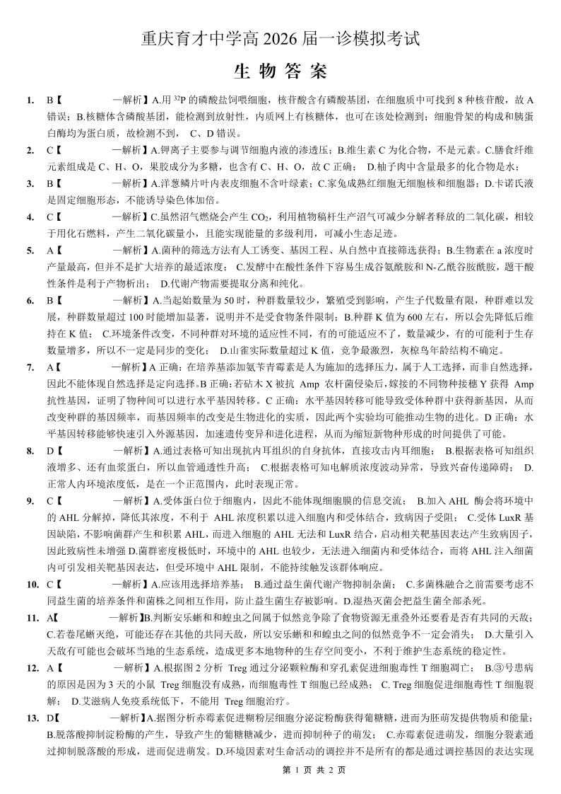 育才中学校高2026届一诊模拟考试 生物答案.pdf