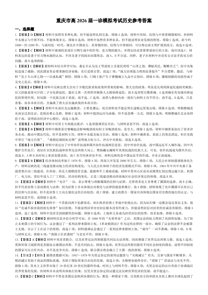 育才中学校高2026届一诊模拟考试 历史答案.pdf