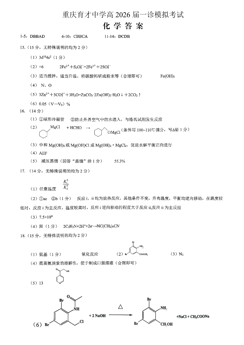 育才中学校高2026届一诊模拟考试 化学答案.pdf