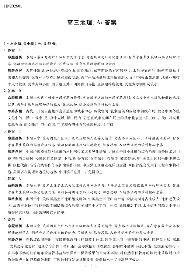 地理A卷高三素质评价详细答案.pdf