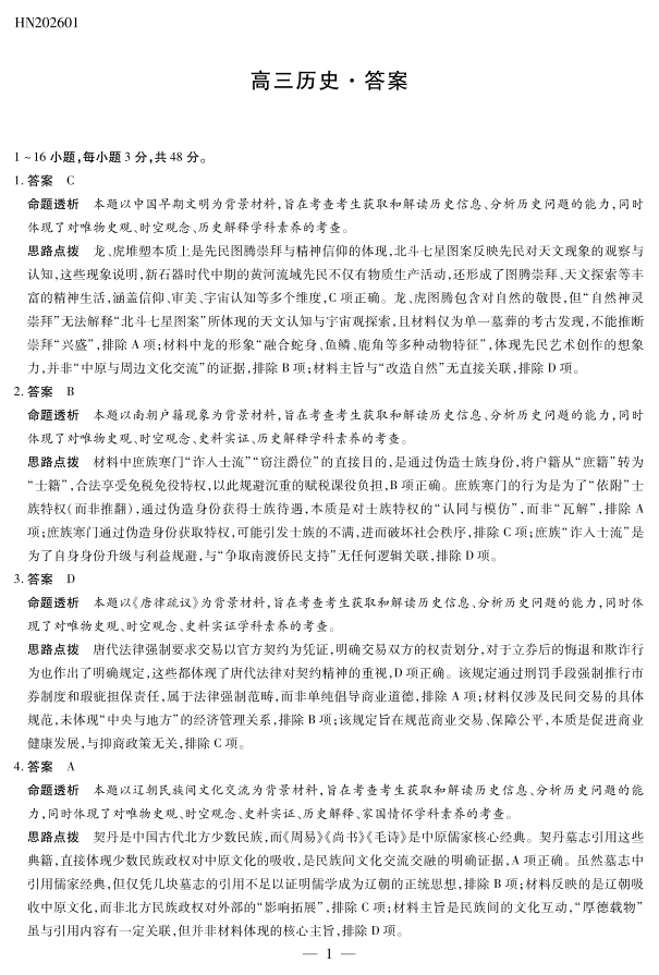 历史高三素质评价详细答案.pdf