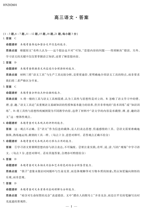 语文高三素质评价详细答案.pdf