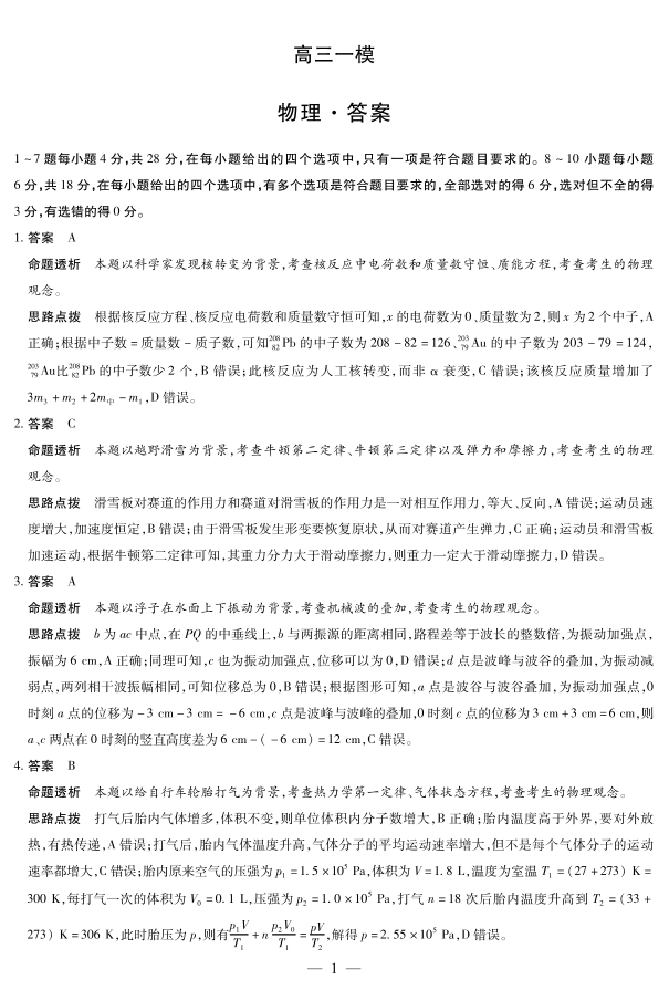 2026届河南省新乡市、鹤壁市、安阳市、焦作市高三一模-物理详细答案.pdf