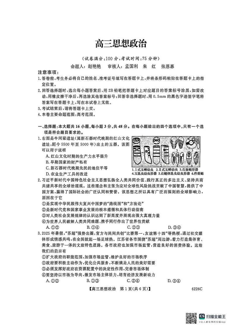 吉林省白山市2026届高三上学期一模考试 政治.pdf